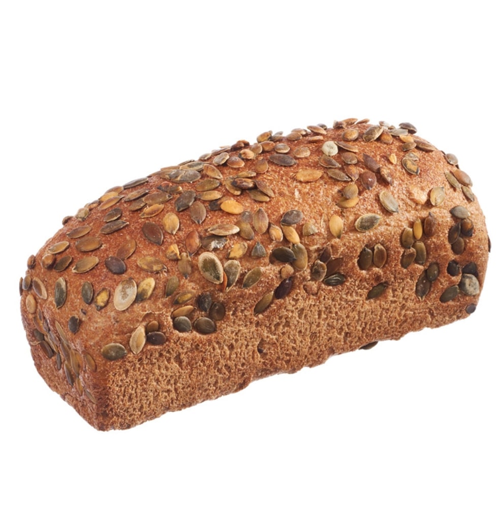 Puur volkoren tarwebrood op basis van desem in combinatie met krachtige pompoen- pitten. Dit brood bereid met NL Demeter graan. Gebakken op een traditionele stenen ovenvloer. Heerlijk smeuïg brood wat erg lang mals blijft.