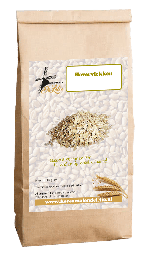 Onze molen maalt biologisch geteeld graan tot vele soorten meelproducten die wij vervolgens verwerken tot verschillende mixen volgens eigen recept. Door gepelde haver te schonen, te ordenen, te stabiliseren en daarna te stomen en te walsen, ontstaan havervlokken, die vervolgens worden gezeefd. Met hun milde smaak zijn ze uitstekend als garnering voor brood of als ingrediënt in verschillende gerechten. Deze biologische havervlokken worden verpakt in onze eigen molen. Wij gebruiken deze havervlokken ook in andere producten. Bevat geen conserveringsmiddelen of andere toevoegingen.
