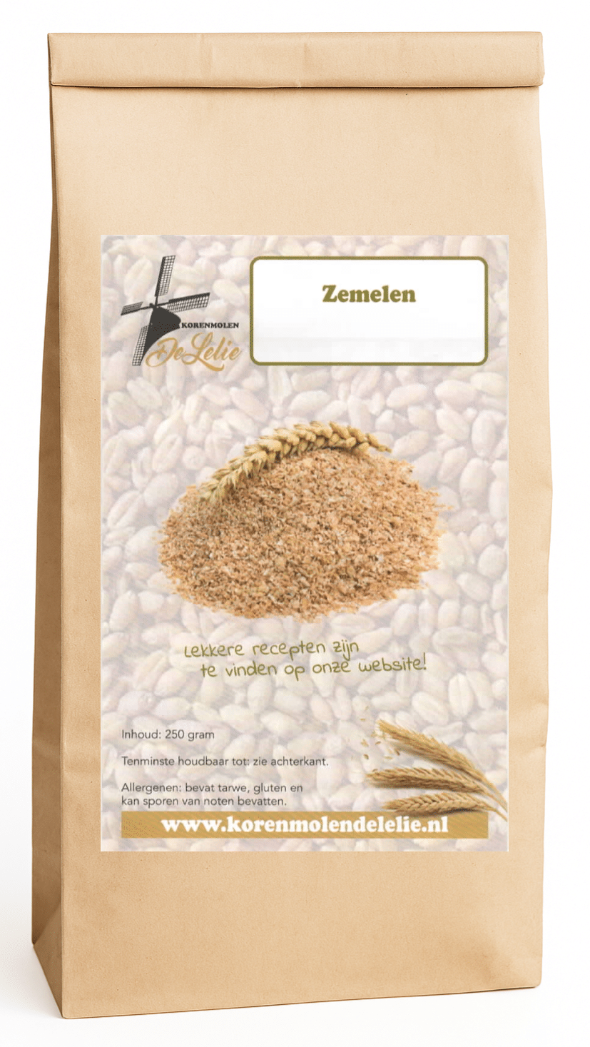 Onze molen maalt biologisch geteeld graan tot vele soorten meelproducten die wij vervolgens verwerken tot verschillende mixen volgens eigen recept. Deze griesmeel wordt verkregen door biologische tarwe te vermalen tot volkoren tarwemeelmeel en daarna te zeven, waarna tarwebloem, zemelen en gries(meel) overblijft. De zemelen worden verpakt in onze eigen molen. Ze bevat geen conserveringsmiddelen of andere toevoegingen.