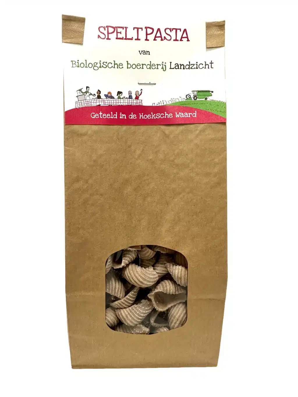 Deze pasta is gemaakt van biologische spelt. De spelt is geteeld en gemaakt op onze eigen boerderij Landzicht in Strijen.